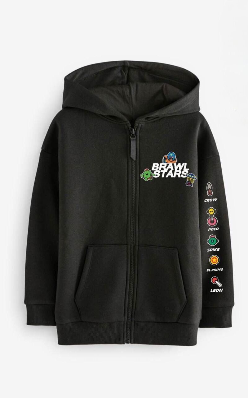 Brawl stars zip-up black fleeced hoodie
