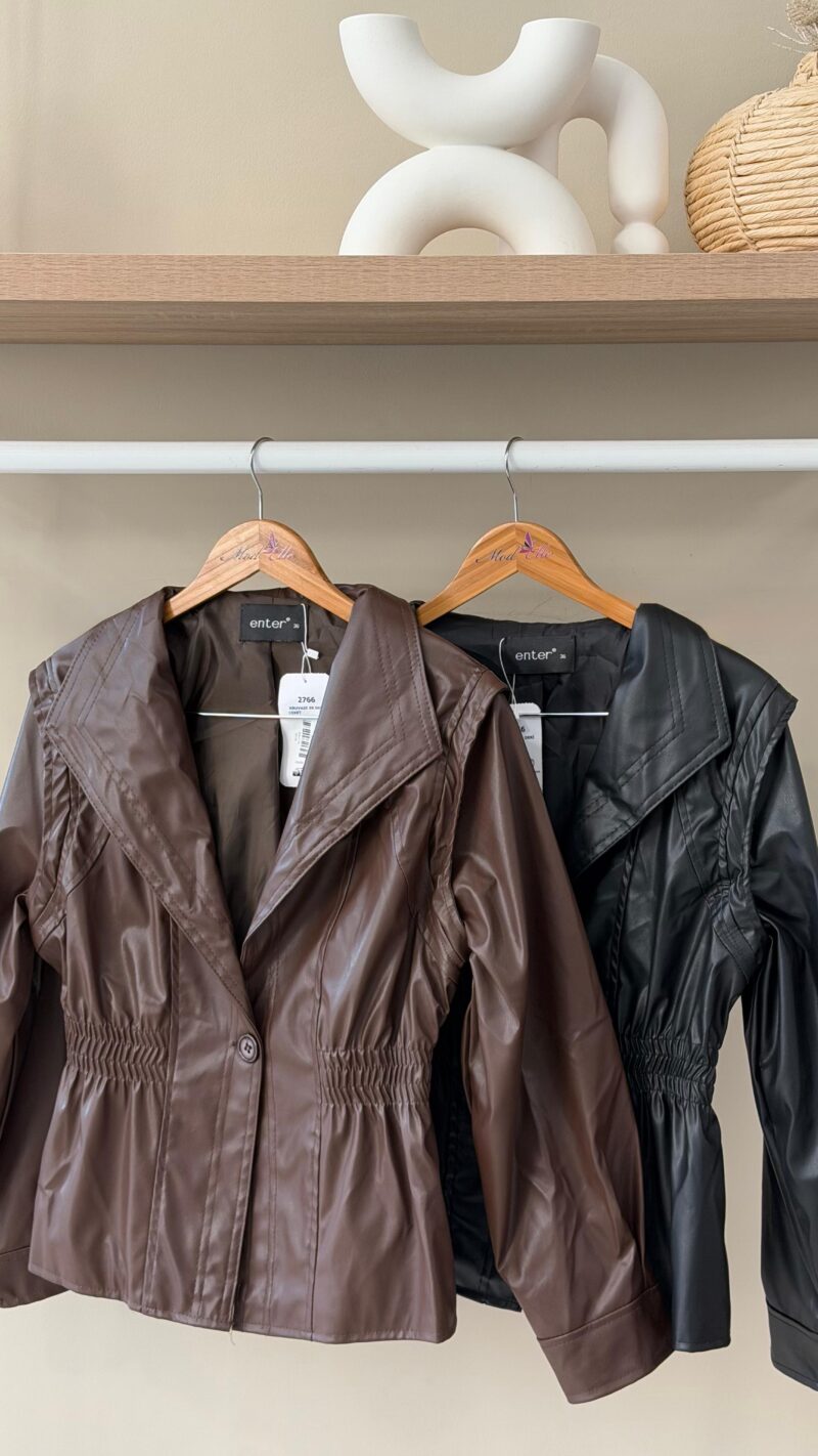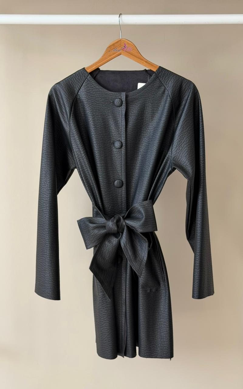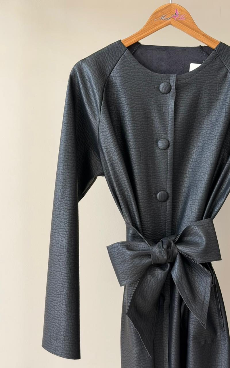Black faux leather long jacket