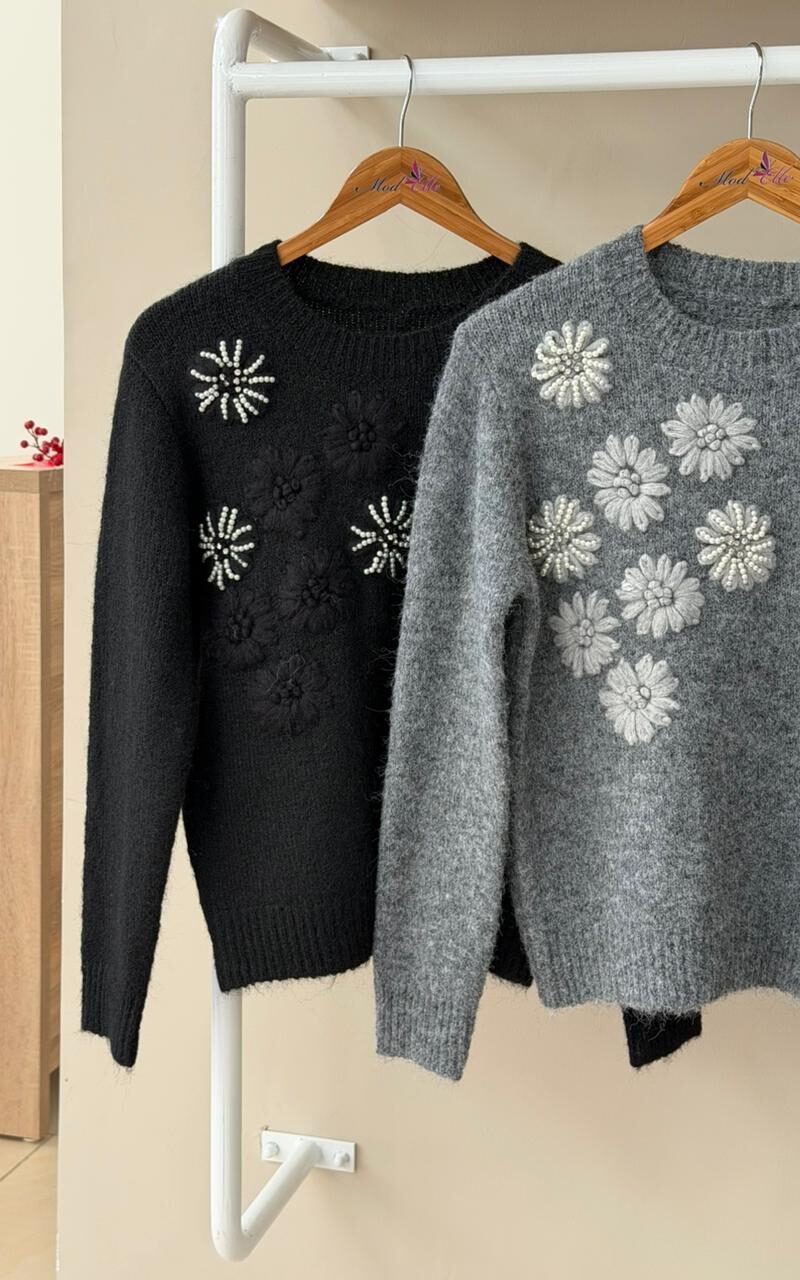 3D flower applique sweater