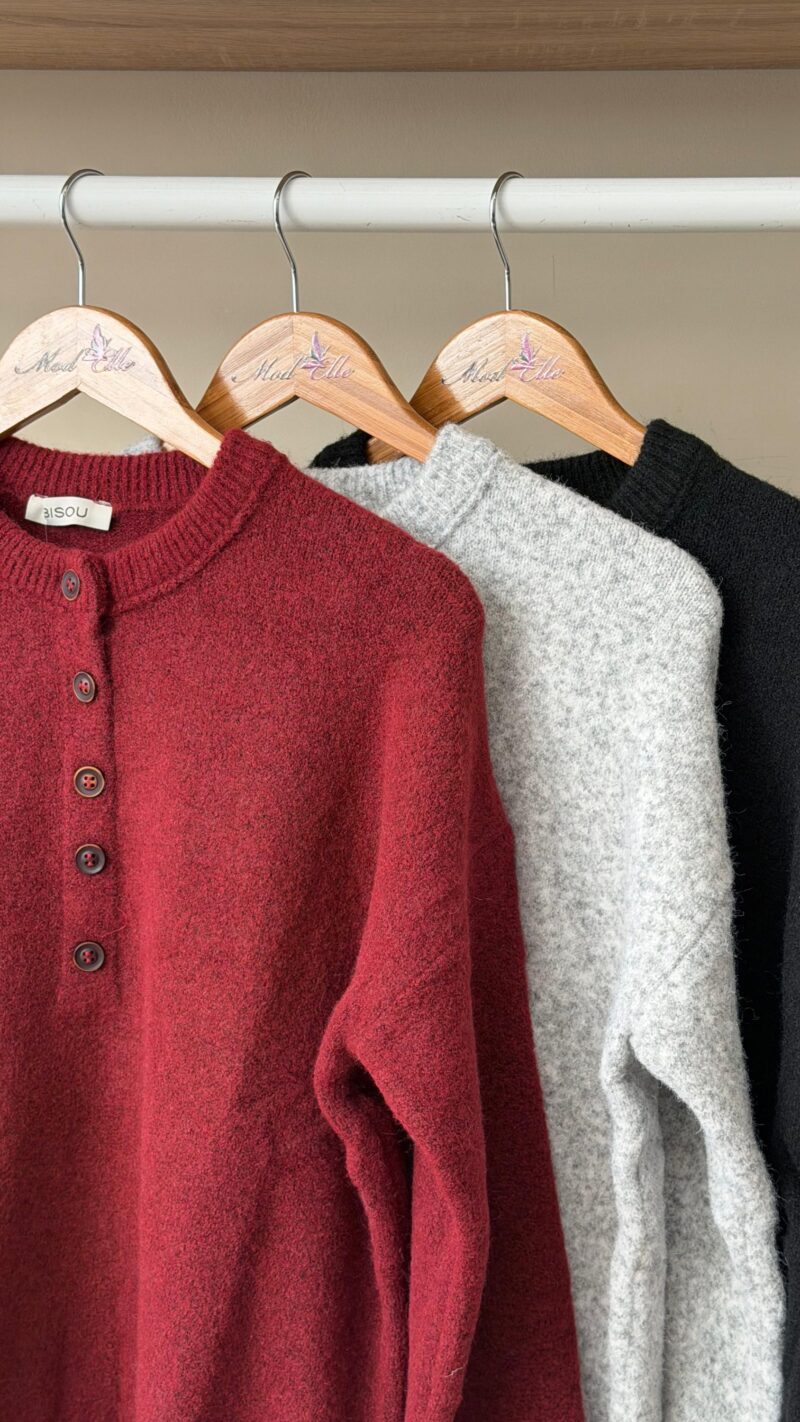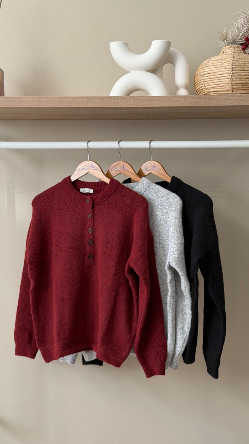 Button front henley sweater