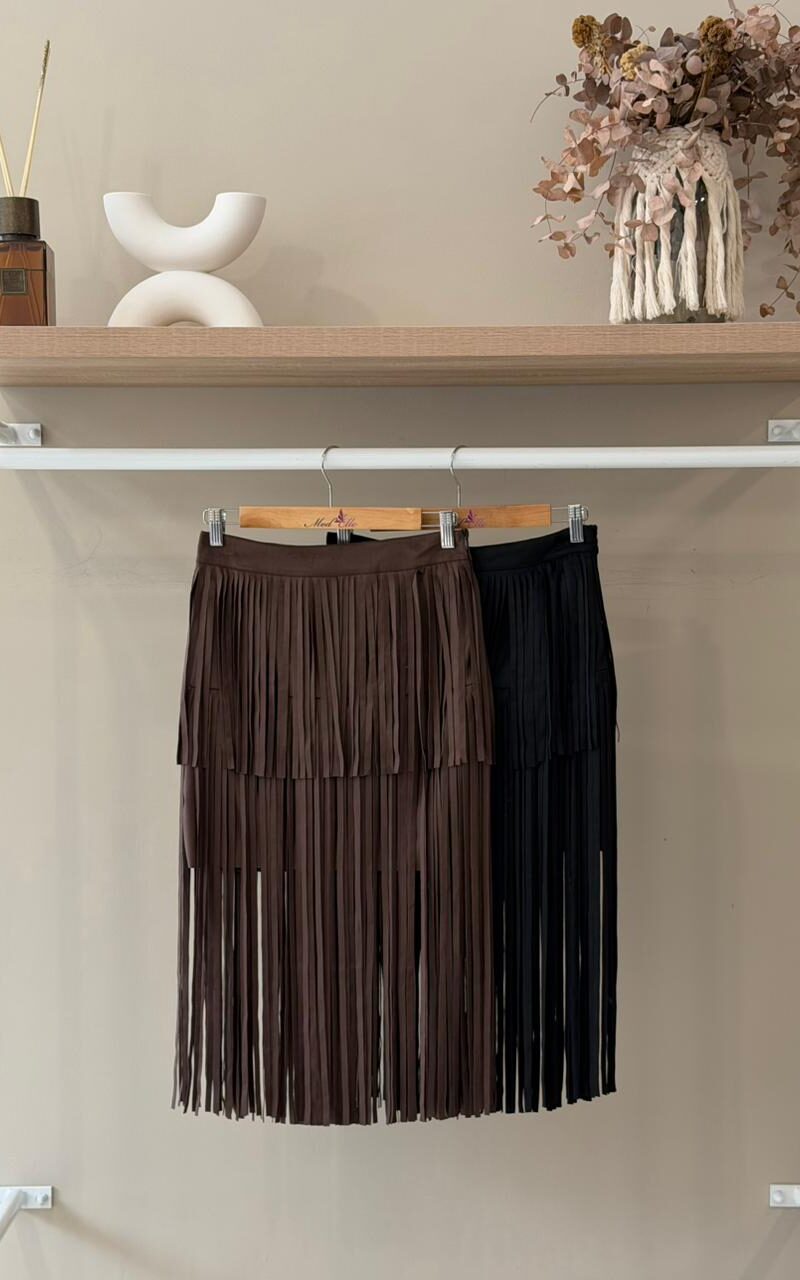 Statement fringe suede skirt