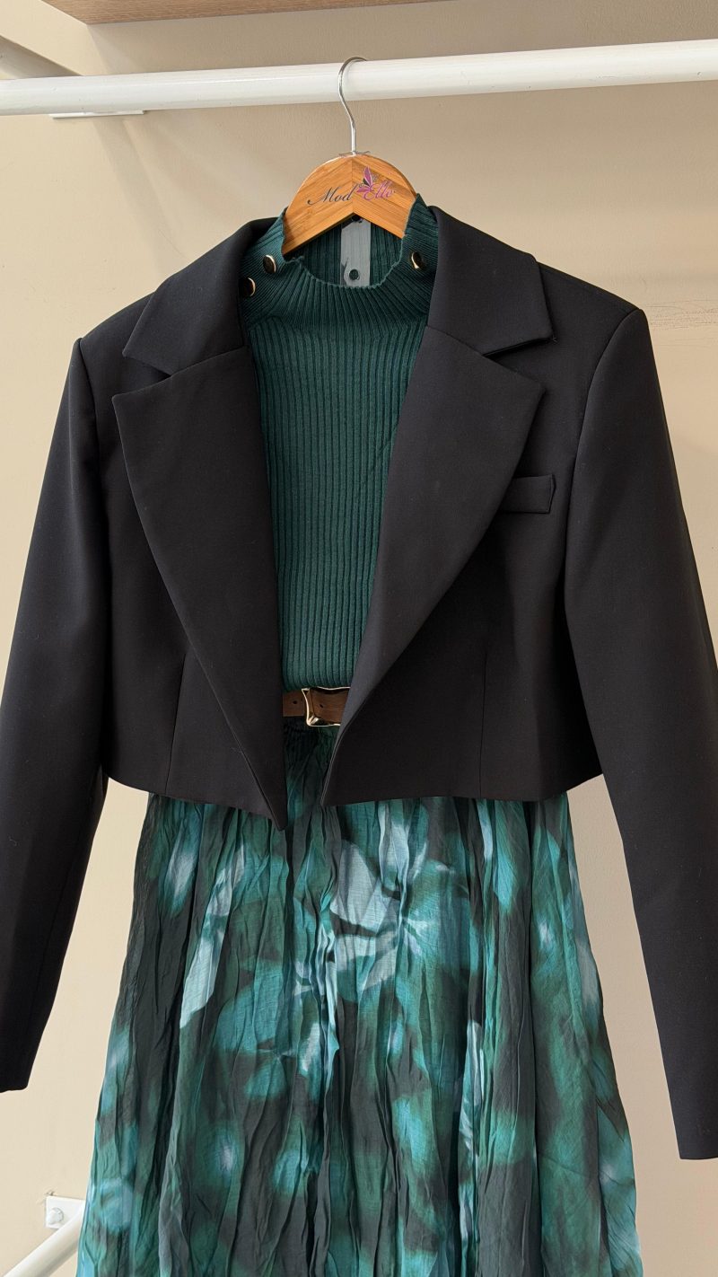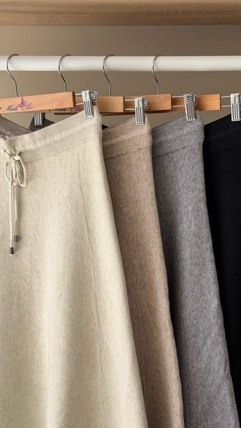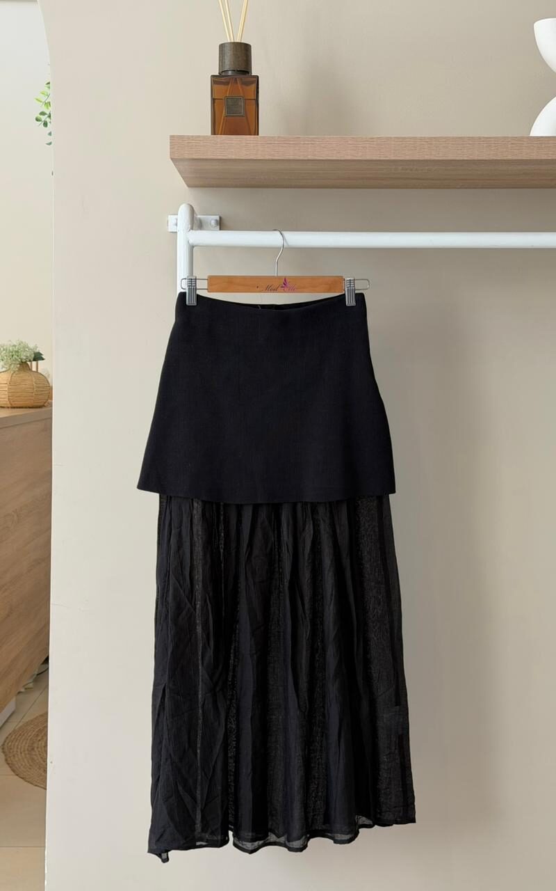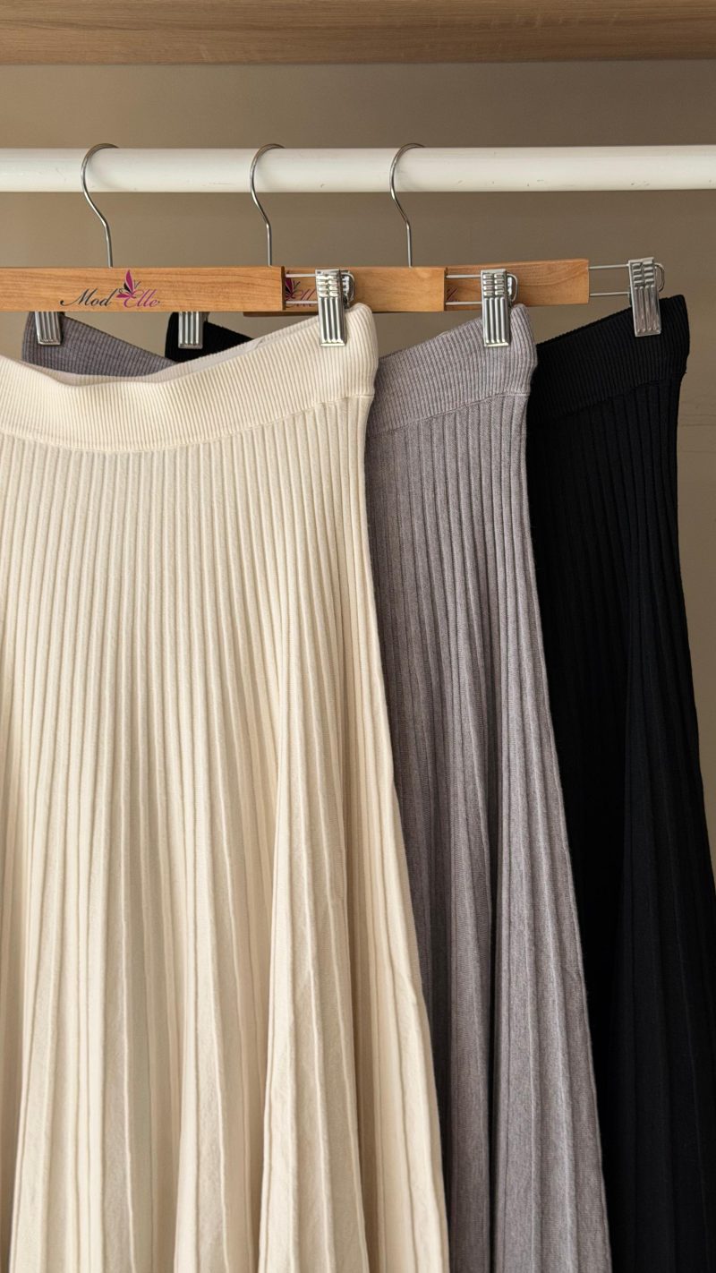 Pleated knit midi skirt