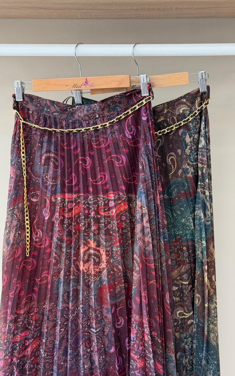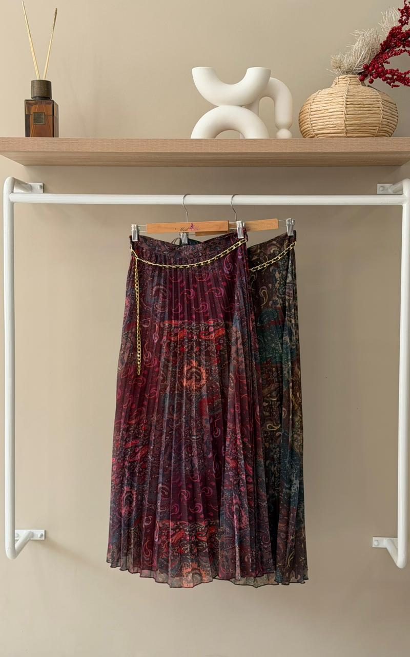 Paisley pleated midi skirt