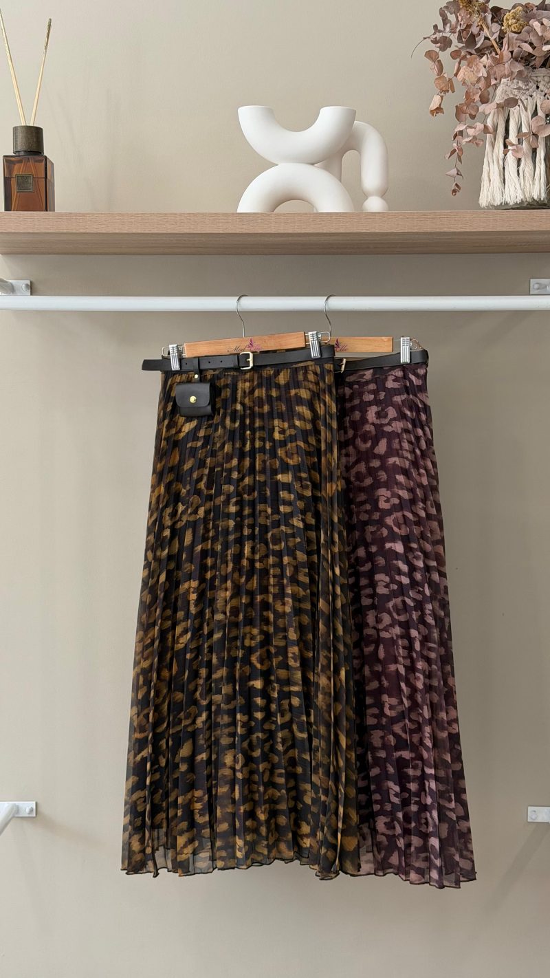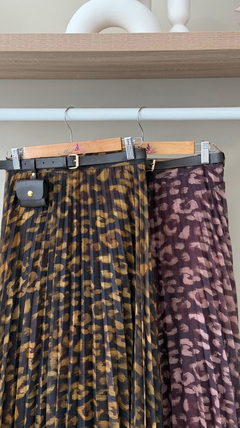 Leopard pleated midi skirts