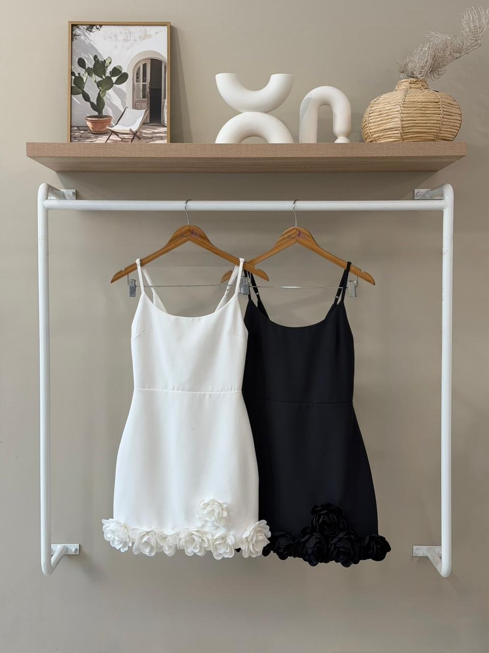3D rose hem spaghetti strap mini dress
