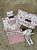 This is a portable, padded baby changing mat and organizer set designed for on-the-go use.