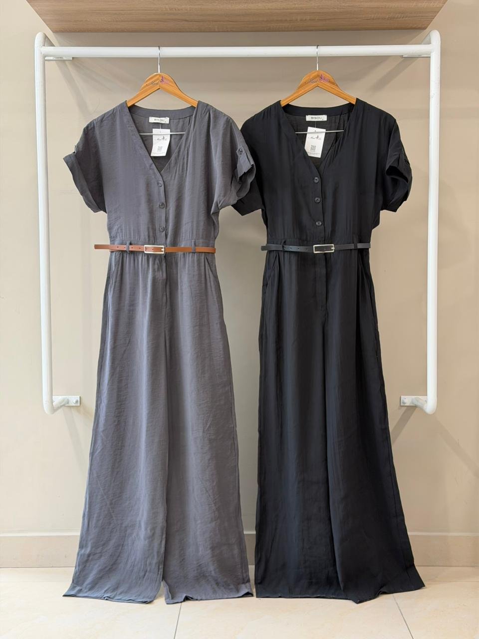 Belted v-neck wide leg jumpsuit