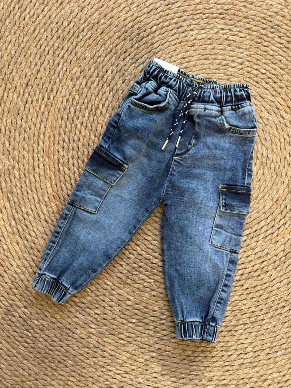 Blue Denim Cargo Jogger Pants
