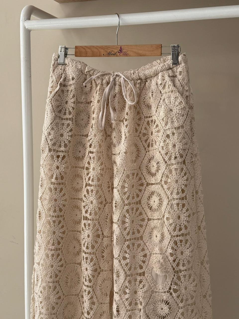 Boho crochet beige wide leg pant