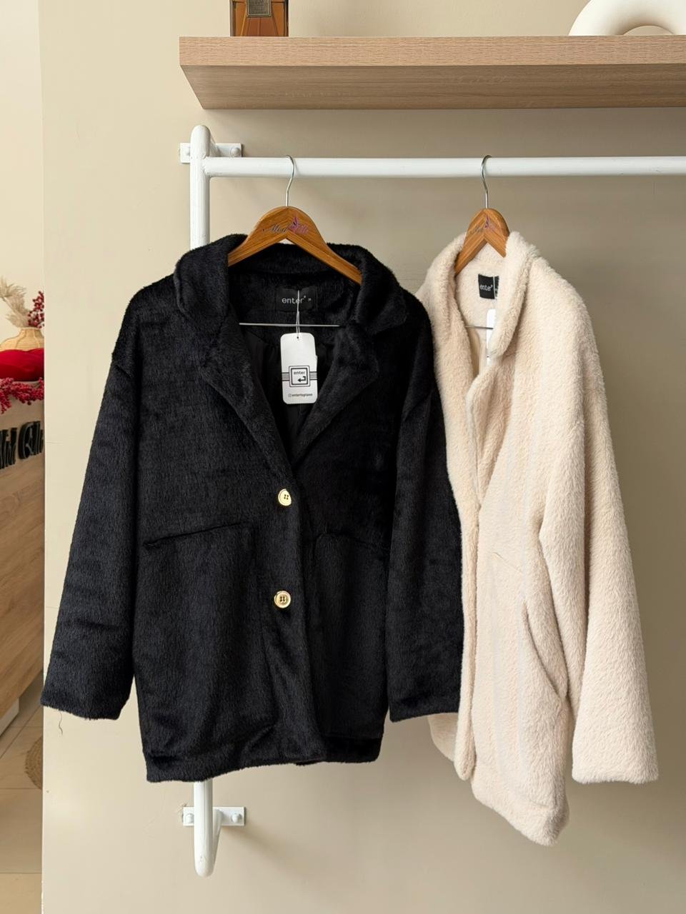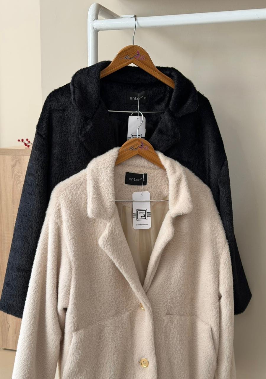 Button front faux fur notch lapel jacket