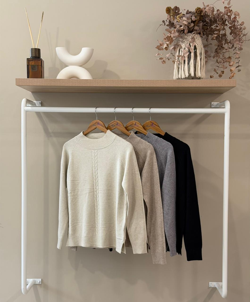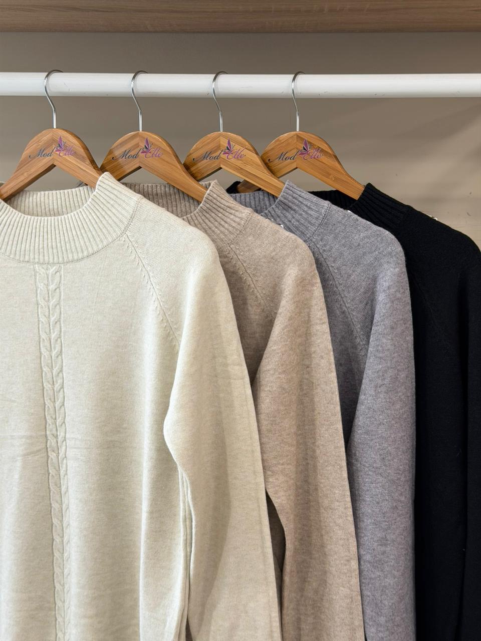 Crafted from a fine, ultra-soft yarn, this pullover offers a comfortable, timeless fit with a sophisticated mid-height neckline. The subtle center cable knit detail adds a delicate texture, making this sweater a perfect blend of comfort and elegance, ideal for layering or wearing on its own for a clean, polished look.