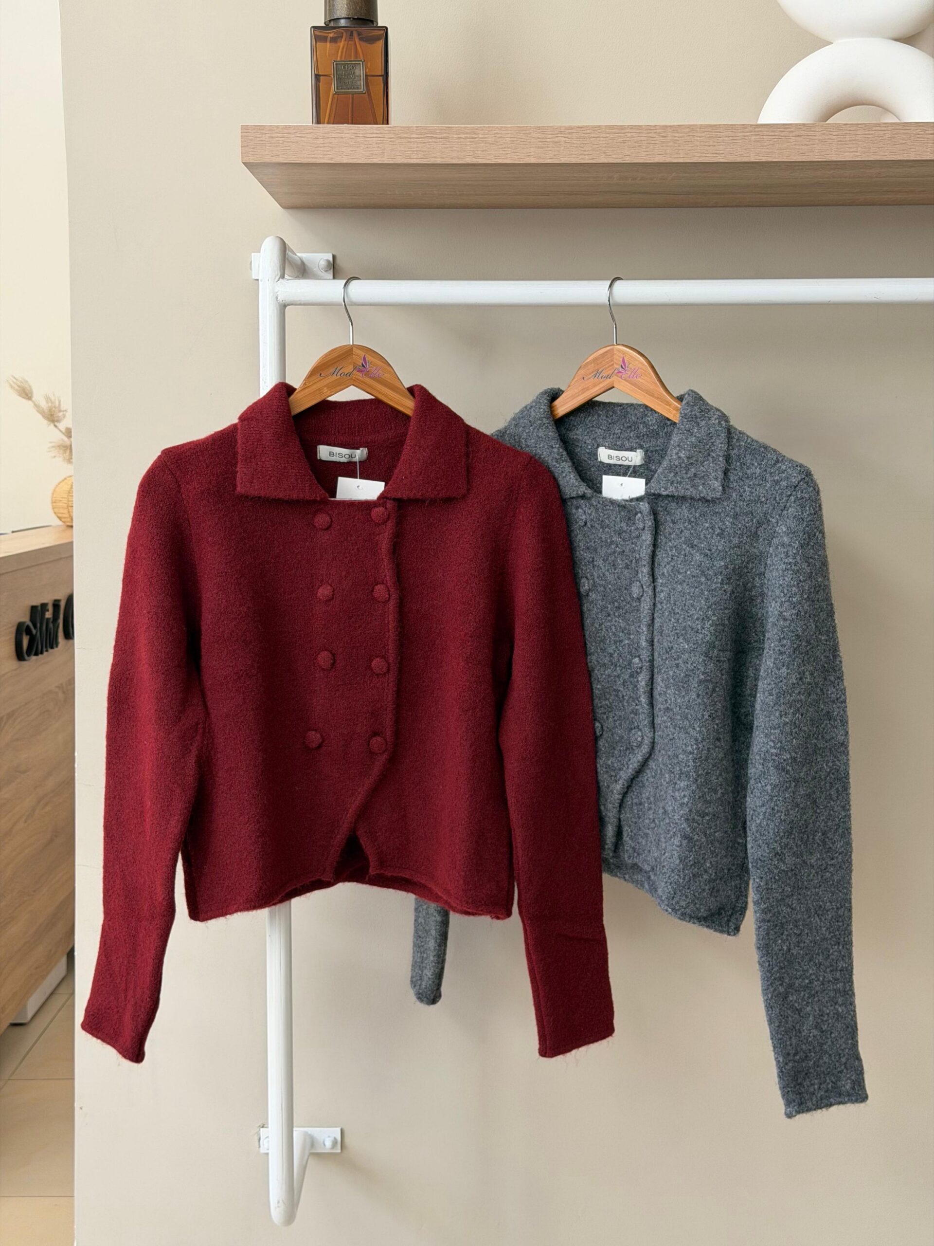 Double breasted collar knit cardigan