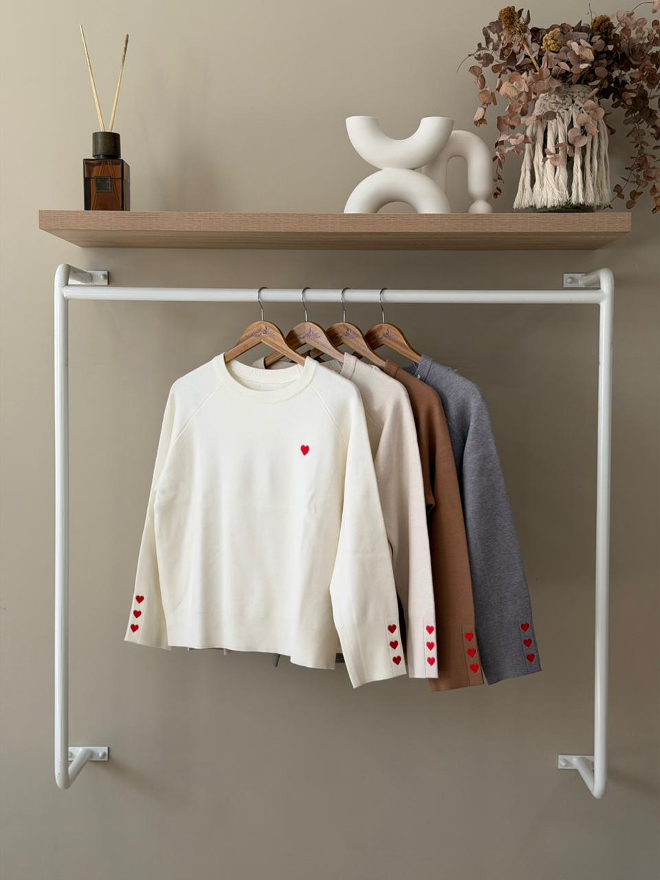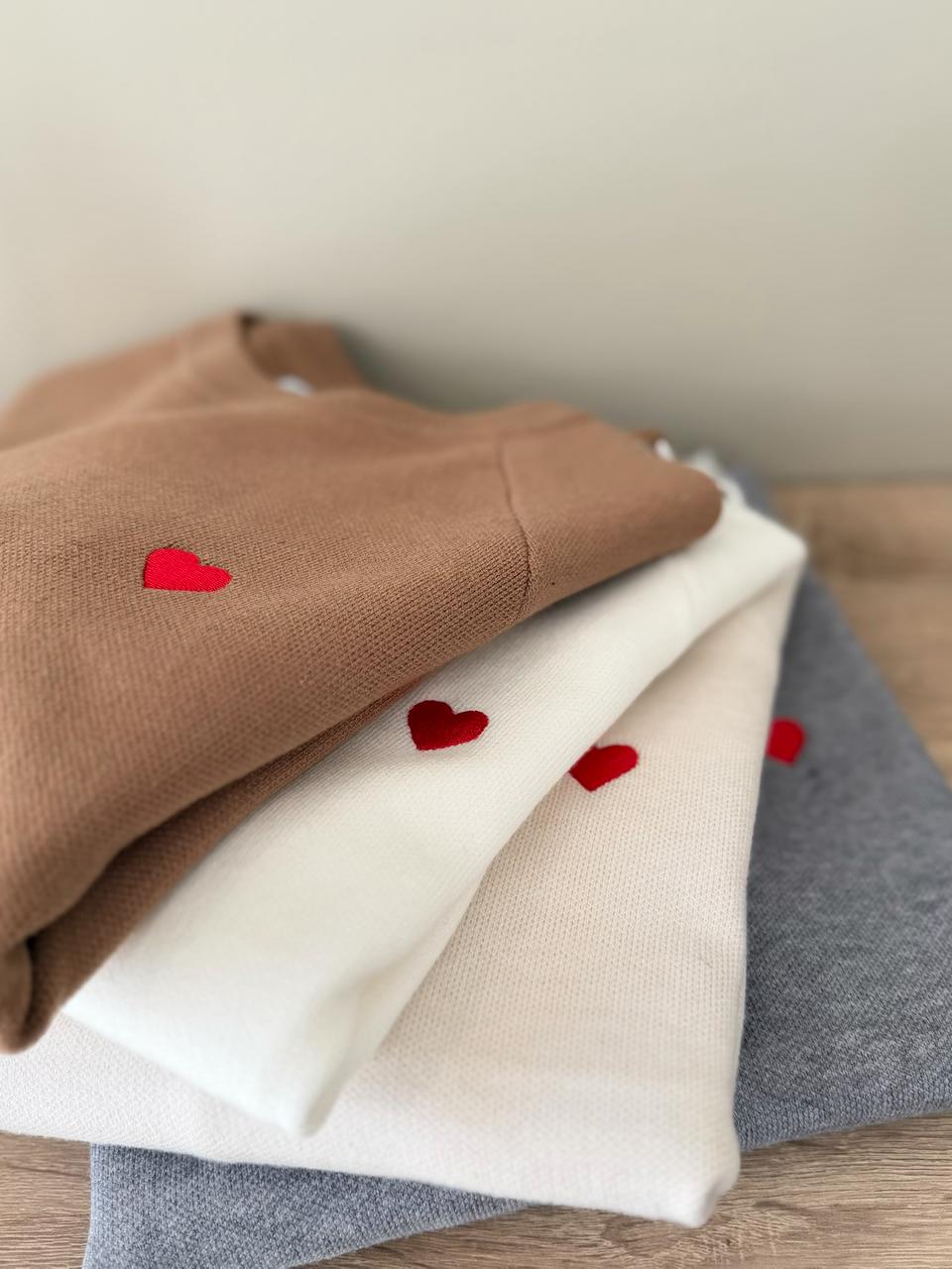 Embroidered red hearts sweater