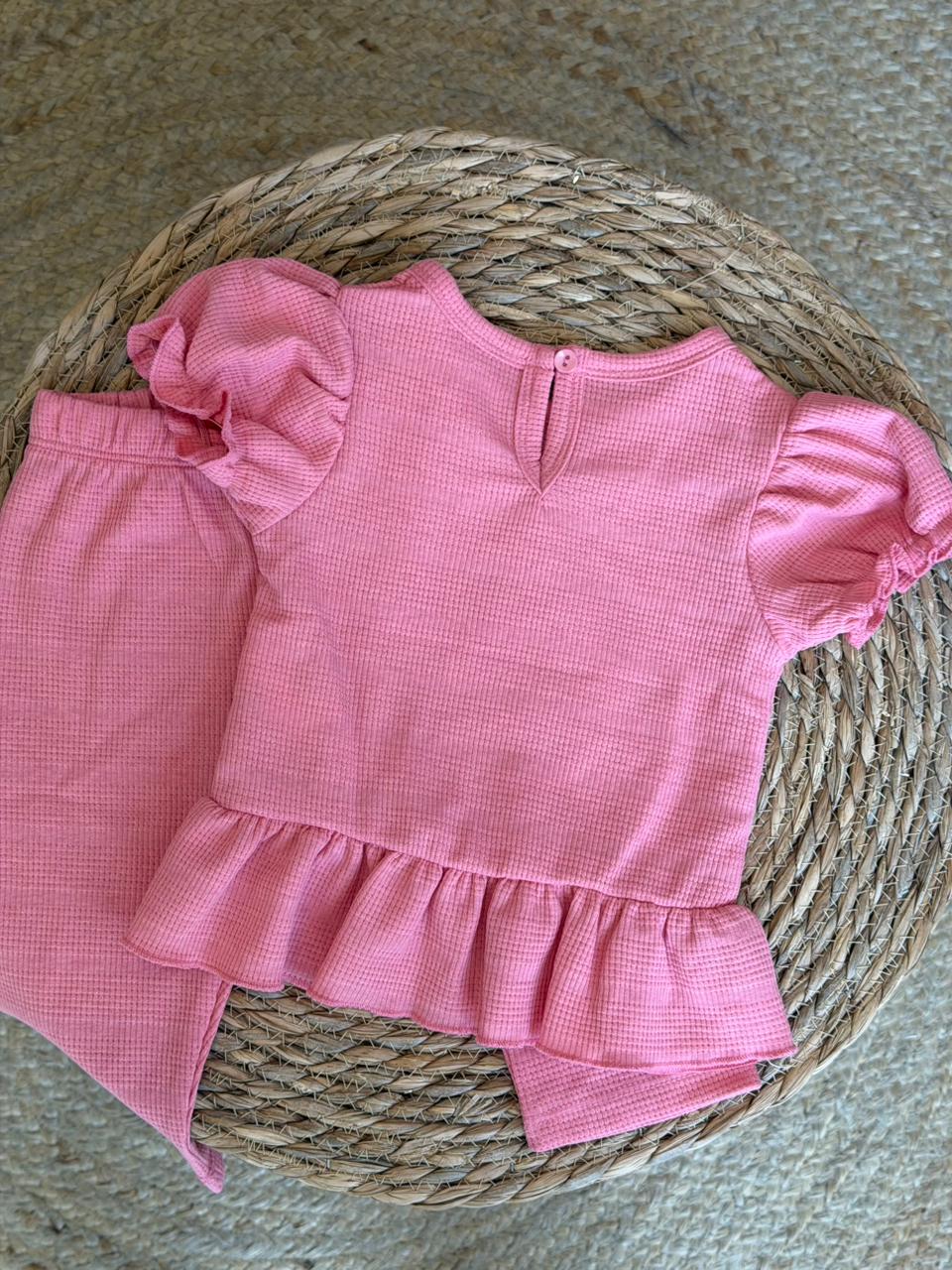Pink Ruffle Sleeve Top and Pants Set