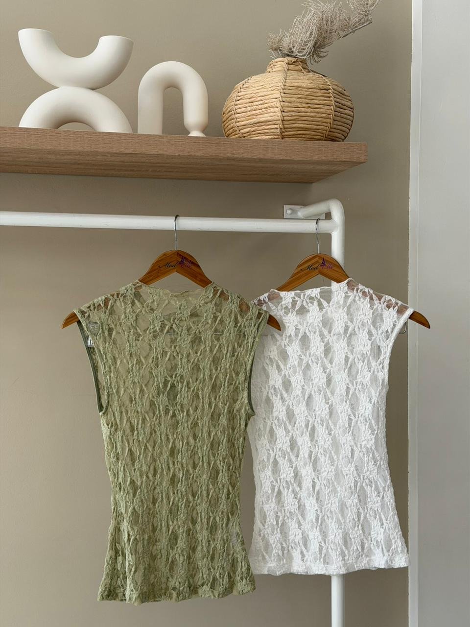 High neck lace shell top