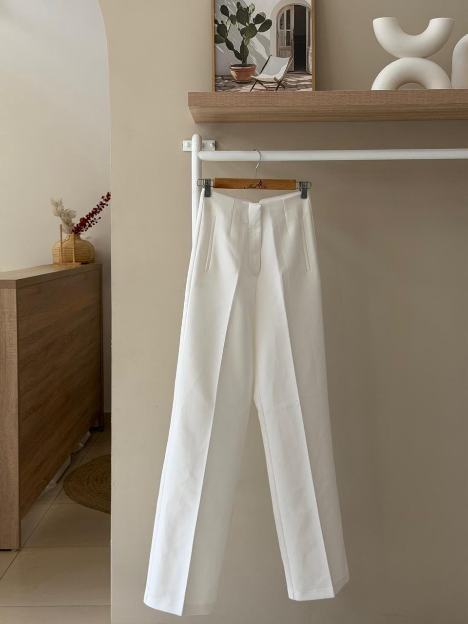 High waist straight leg white trousers