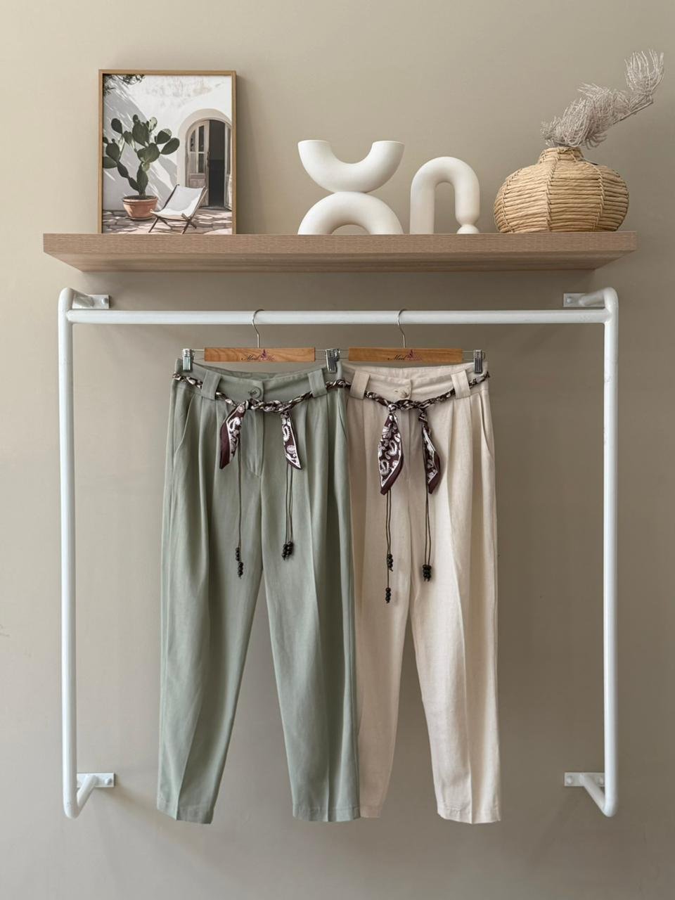High waisted pleated linen trousers with scarf belt