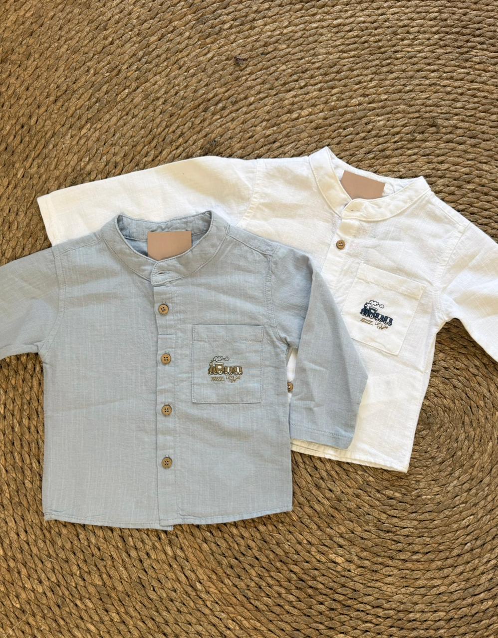 Kids Cotton Button-Up Shirts With Train Embroidery