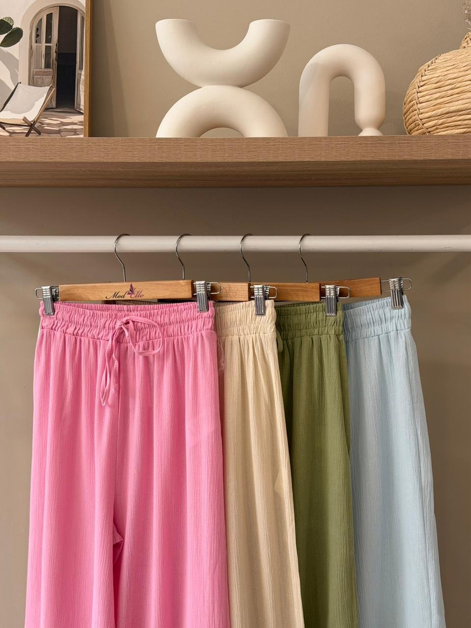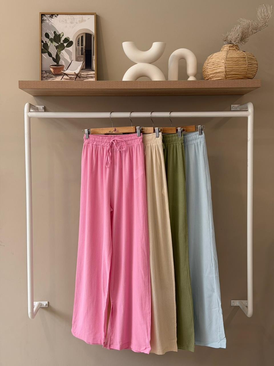 Linen crinkle drawstring wide leg pants