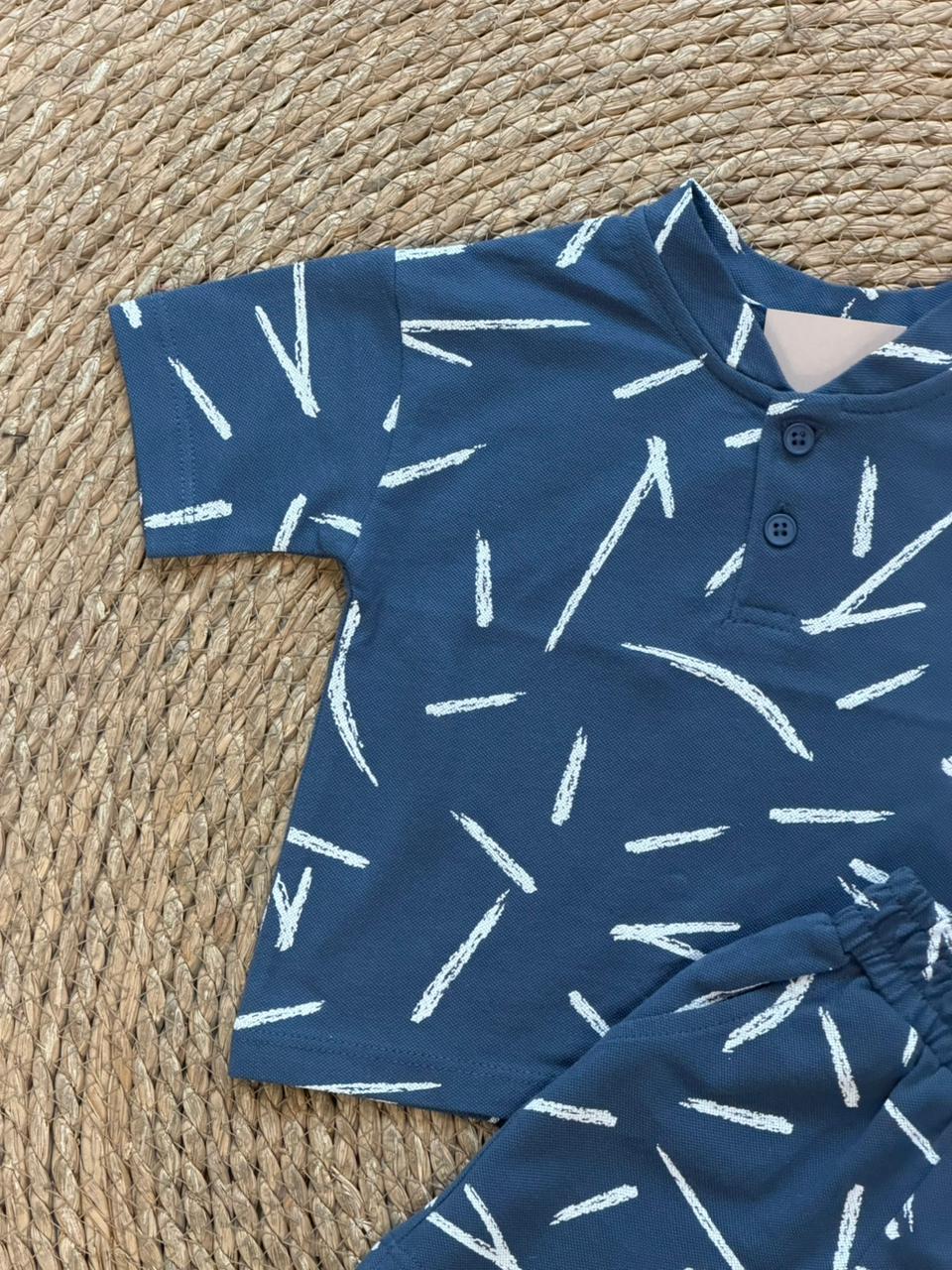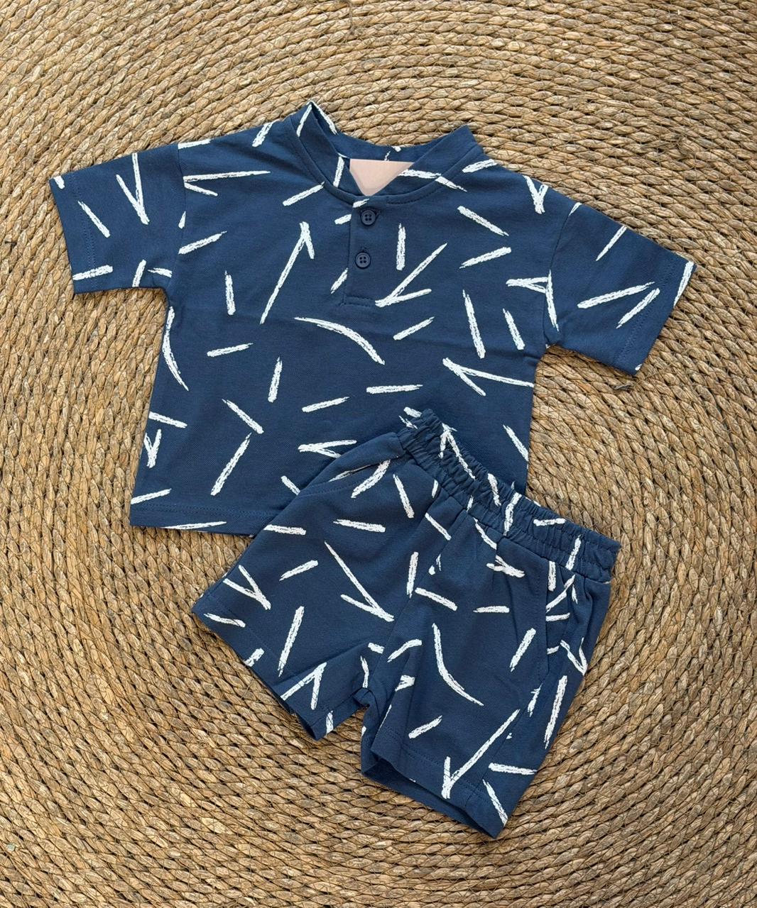 Navy Blue Patterned Shirt and Shorts Set