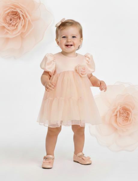 Peach Tulle Baby Dress With Flower