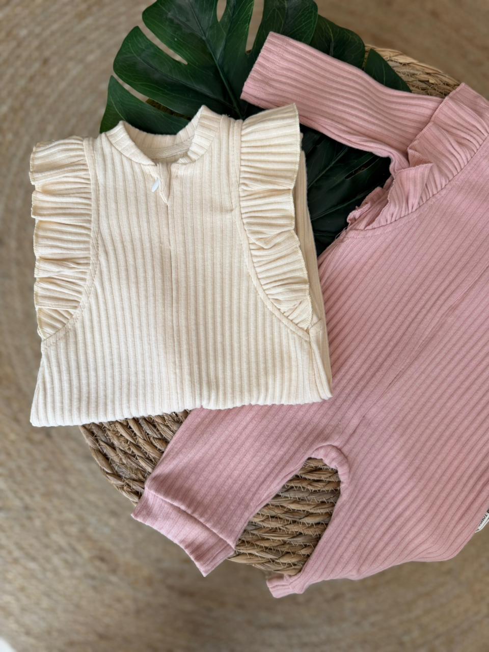 Ribbed Baby Romper With Ruffle Sleeves