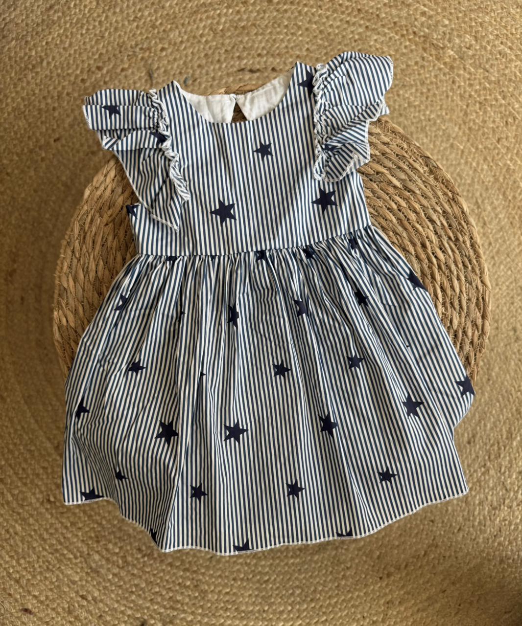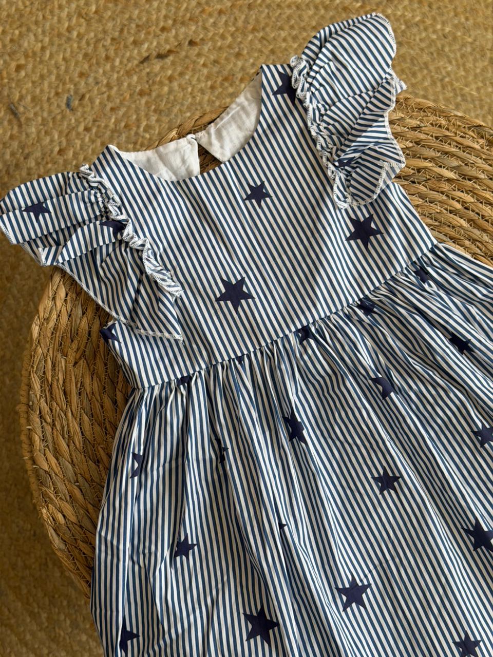 Striped Star Print Ruffle Dress