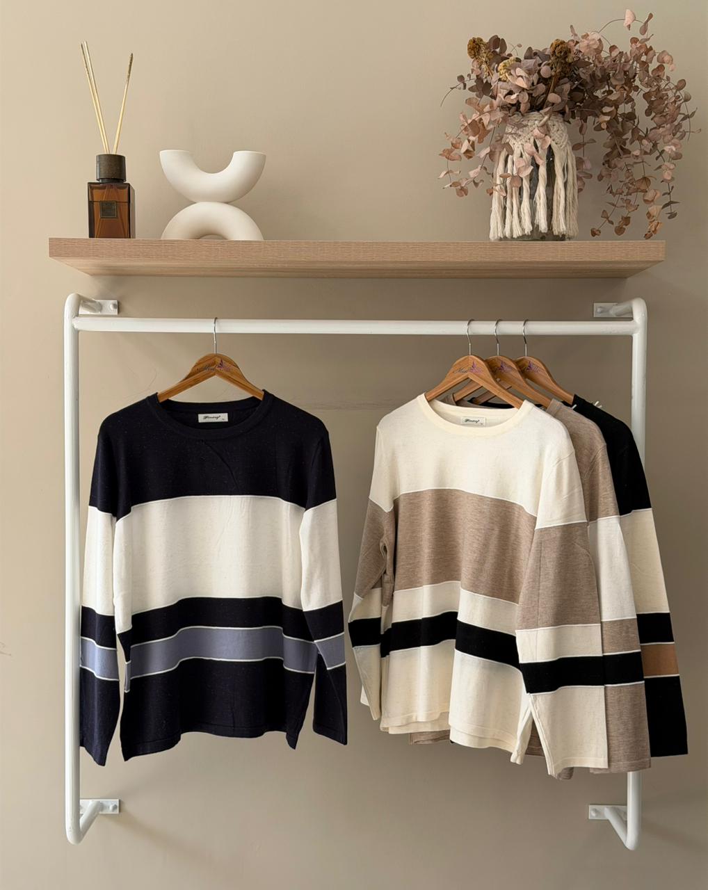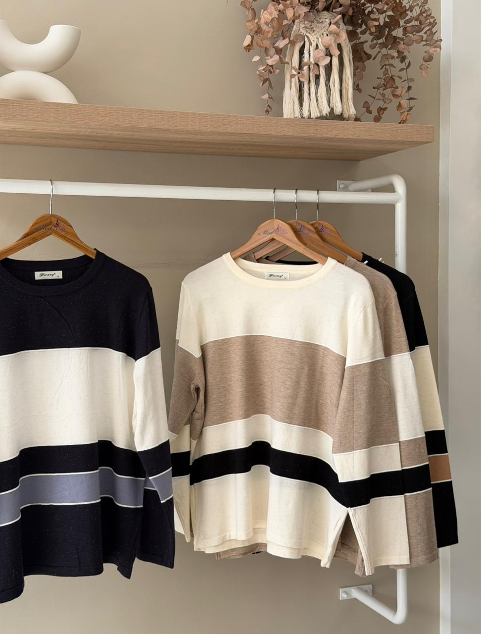 Wide block stripe knit sweater