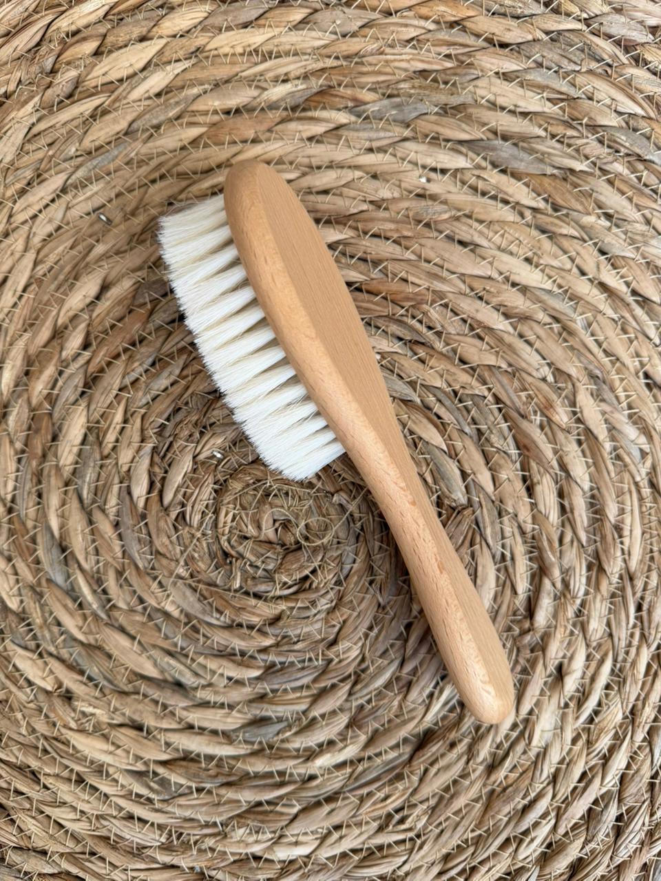Gently care for your baby’s delicate hair with this Wooden Baby Hair Brush With Soft Bristles. Designed with a natural wood handle and ultra-soft bristles, it provides a soothing grooming experience. The ergonomic shape offers a comfortable grip for easy handling.