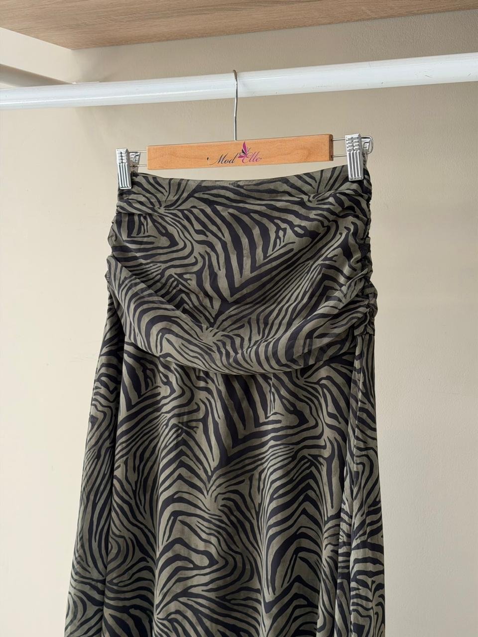 Zebra print ruched maxi skirt